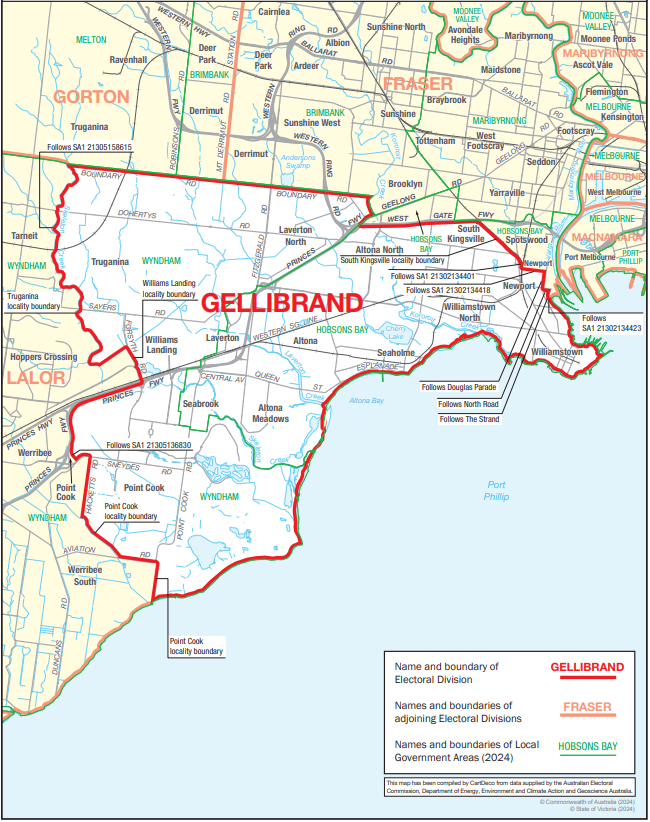 Stretching from Melbourne’s inner west to the outer suburbs of Wyndham City Council, Gellibrand includes the suburbs of: